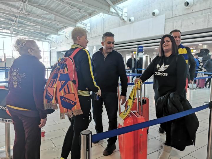 Στο αεροδρόμιο είναι οι φίλοι του ΑΠΟΕΛ όπου θα αναχωρήσουν με την αποστολή της ομάδας για την Ελβετία όπου αύριο οι γαλαζοκίτρτινοι θα αντιμετωπίσουν την Βασιλεία στον επαναληπτικό του (0-3) στο πλαίσιο της φάσης των 32 του Γιουρόπα Λιγκ.