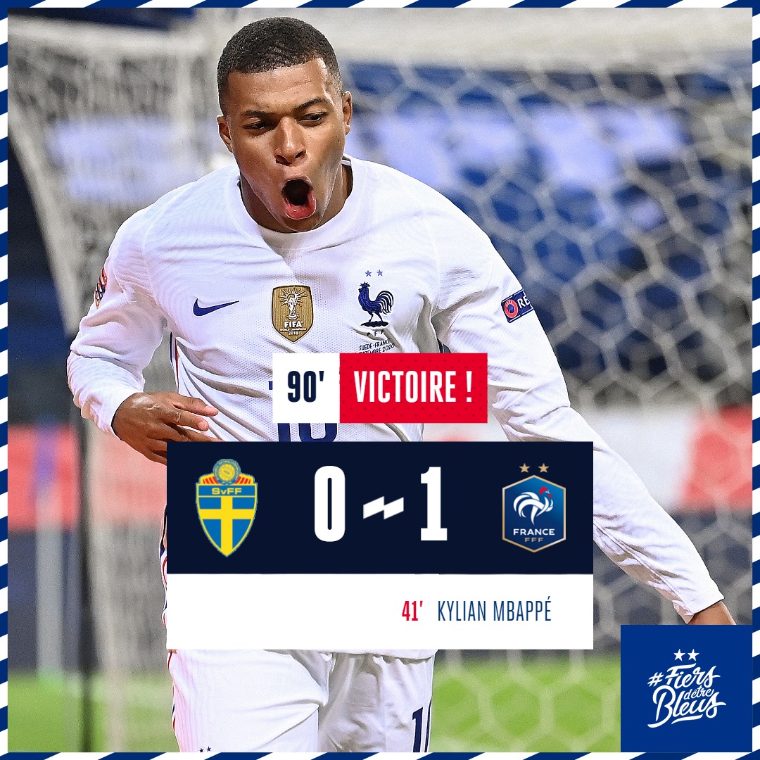Με τον καλύτερο τρόπο ξεκίνησε τις υποχρεώσεις στο Group3 του Nations League του 2020-21 η πρωταθλήτρια κόσμου, Γαλλία. Οι Τρικολόρ λύγισαν με 0-1 την πάντα μαχητική, Σουηδία, με τον Κιλιάν Μπάπε να πετυχαίνει το μοναδικό γκολ της αναμέτρησης που έγινε στην Σόλνα. Στο 41’ ο σταρ της Παρί Σεν Ζερμέν πήρε την κόντρα μέσα στην περιοχή και από δύσκολη γωνία νίκησε τον Ολσεν. Το 0-1 παρέμεινε ως το τελικό παρά την καλή απόδοση των Σκανδιναβών στην επανάληψη, ειδικά μετά την είσοδο του Κολουσέβσκι και παρότι στις καθυστερήσεις ο Μαρσιάλ πήρε πέναλτι, όμως ο Γκριεζμάν έστειλε την μπάλα… έξω από το γήπεδο.
