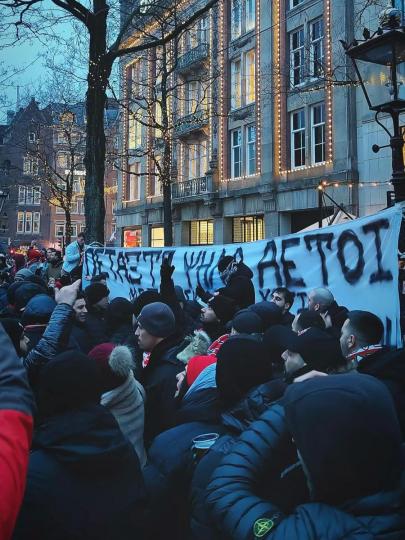 Οι οπαδοί του Ολυμπιακού σε μια όμορφη κίνηση, σήκωσαν πανό στο Άμστερνταμ για τους 7 φίλους του ΠΑΟΚ που έχασαν τη ζωή τους στο δυστύχημα της Ρουμανίας.