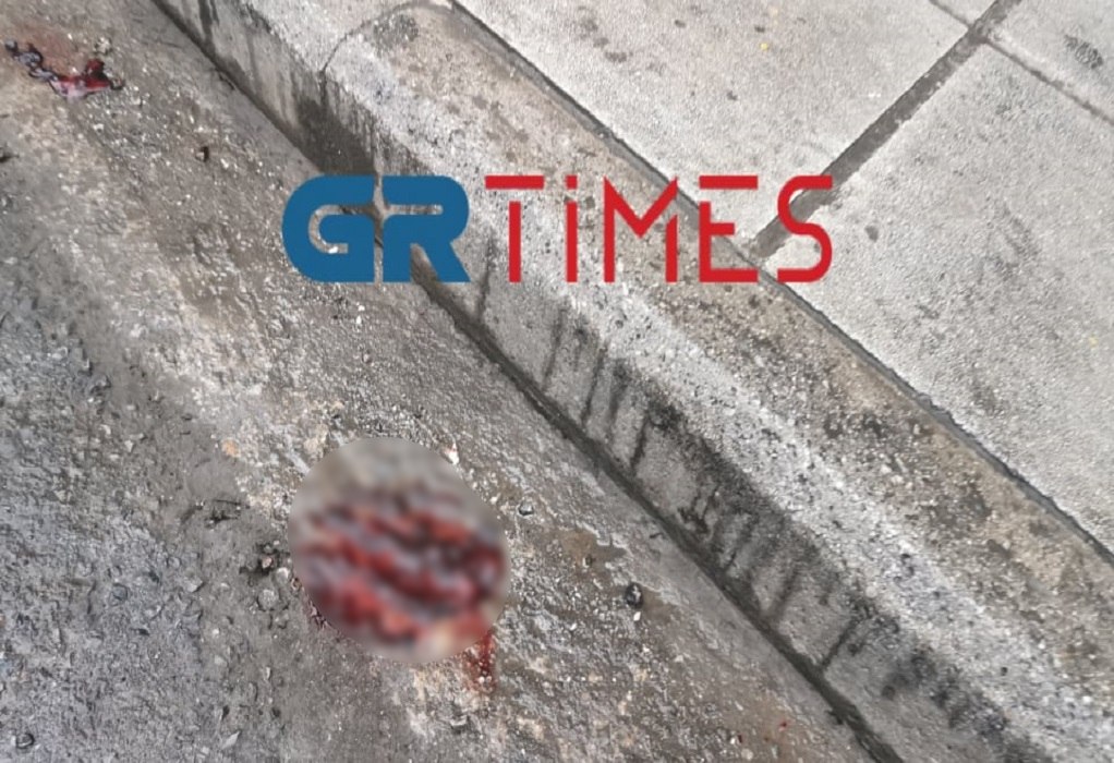 Γεμάτο αίματα είναι το πεζοδρόμιο επί της οδού Θεοδώρου Γαζή στη Θεσσαλονίκη, στην περιοχή της Χαριλάου, στο σημείο που δέχτηκαν δολοφονική επίθεση τρεις νεαροί με αποτέλεσμα ένας 19χρονος να χάσει τη ζωή του έπειτα από μαχαίρωμα.