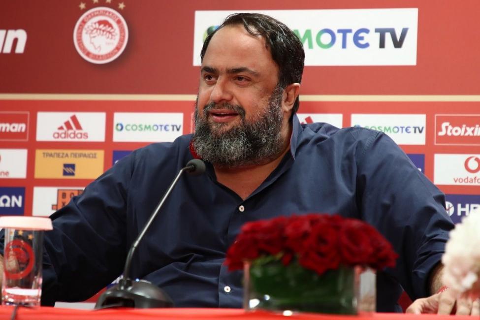 Ο Βαγγέλης Μαρινάκης παρουσίασε το νέο προπονητή του Ολυμπιακού, Μίτσελ, σε εκδήλωση στα γραφεία της ΠΑΕ στην πλατεία Αλεξάνδρας.