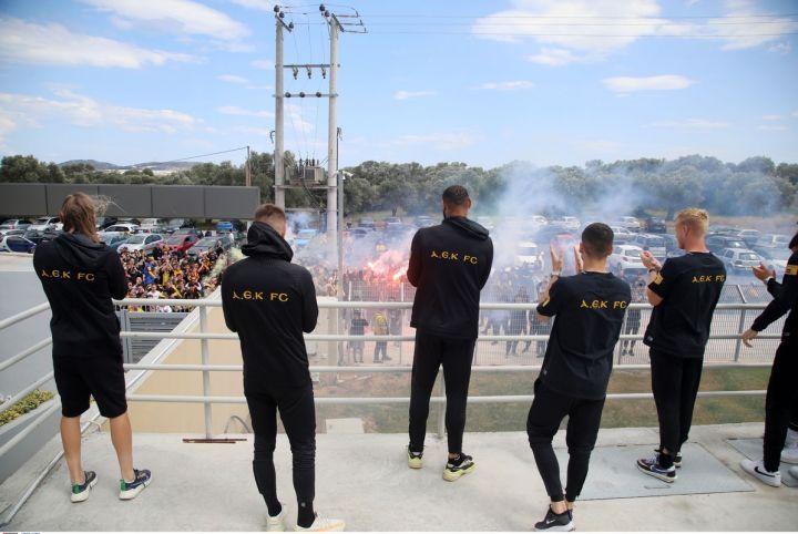 Οπαδοί της ΑΕΚ πήγαν στο προπονητικό κέντρο της ομάδας στα Σπάτα. Το αρχικό "πλάνο" ήταν να ξεπροβοδίσουν την αποστολή για τη Θεσσαλονίκη, όμως η Ένωση δεν θα πετάξει μετά την αναβολή της ένατης αγωνιστικής των playoffs.
