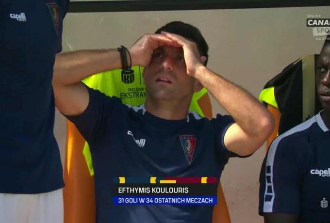 Η κάμερα συνέλαβε τον πρώτο σκόρερ του περσινού πρωταθλήματος με 31 γκολ σε 34 παιχνίδια, εμφανώς προβληματισμένο (και συγκινημένο), αφού δεν αποκλείεται αυτή να ήταν η τελευταία φορά που ο Κουλούρης βρέθηκε σε παιχνίδι της Πογκόν, μία ομάδα που τον βοήθησε να απογειώσει την χρηματιστηριακή του αξία.