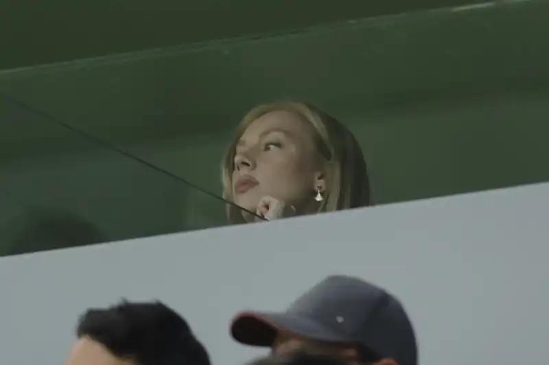 Ο λόγος δεν ήταν άλλος, από το να δει αγωνιζόμενο τον αγαπημένο της, Κιλιάν Εμπαπέ, ο οποίος πέρασε στο ματς στο 64ο λεπτό. Στο πλευρό της Εστέρ Εσπόζιτο, ήταν ο ηθοποιός Σέρχιο Μόμο.