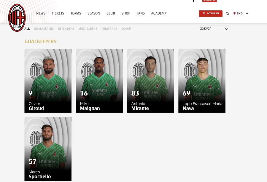 Έτσι από το πρωί της Κυριακής (8/10) στην ιστοσελίδα των «ροσονέρι» ο Ολιβιέ Ζιρού φιγουράρει μεταξύ των υπόλοιπων τερματοφυλάκων της ομάδας, Μάικ Μενιάν, Αντόνιο Μιράντε, Φρανσέσκο Νάβα και Μάρκο Σποτιέλο!