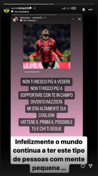 Δέκτης ρατσιστικών σχολίων έγινε ο Ράφα Λεάο εξαιτίας της κακής πορείας της Μίλαν το τελευταίο διάστημα. Συγκεκριμένα, ένας οπαδός των «ρσονέρι» έγραψε χαρακτηριστικά στα social media πως «δεν μπορώ πια να σε βλέπω, δεν σε αντέχω άλλο. Με εσένα στον αγωνιστικό χώρο, γίνομαι ρατσιστής. Πραγματικά με κάνεις έξαλλο, φύγε όσο πιο γρήγορα γίνεται, εσύ και όσοι σε ακολουθούν».