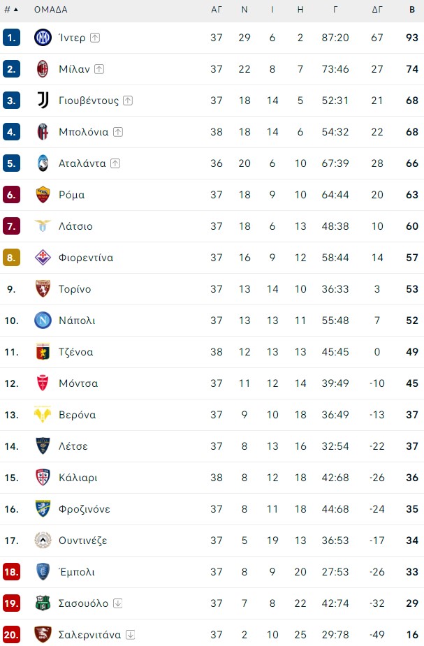 Παράλληλα, αυτό το αποτέλεσμα έκοψε τις ελπίδες της Μπολόνια για την 3η θέση. Βέβαια -έχοντας πάντα εξασφαλίσει την έξοδο στο Champions League- μπορεί να βρεθεί ακόμη και 5η, εάν η Αταλάντα νικήσει έστω ένα από τα δύο ματς που της απομένουν (αμφότερα εντός έδρας με Τορίνο και Φιορεντίνα). Αρνητική εξέλιξη κυρίως για την 6η Ρόμα. Υπενθυμίζεται ότι εάν και μόνο εάν οι «μπεργκαμάσκι» τερμάτιζαν στην 5η θέση, η Ιταλία θα έβγαζε και 6η ομάδα στην κορυφαία διοργάνωση.
