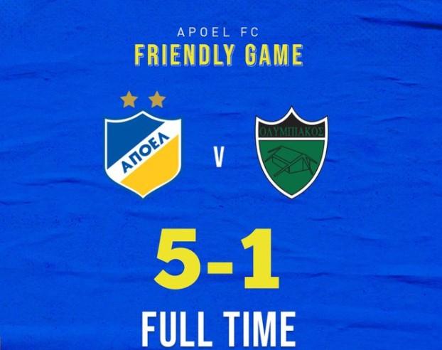 Ο ΑΠΟΕΛ επικράτησε με το εμφατικό 5-1 του Ολυμπιακού στο μεταξύ τους φιλικό που διεξήχθη στο προπονητικό κέντρο «NAGA PAY – Αρχάγγελος».