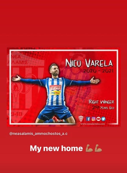 Με κάθε επισημότητα ποδοσφαιριστής της Νέας Σαλαμίνας είναι ο Νίκο Βαρέλα και Ουρουγουανός μεσοεπιθετικός ανάρτησε στα social media την φωτογραφία από την ανακοίνωση της απόκτησής του και έγραψε "Το νέο μου σπίτι"!