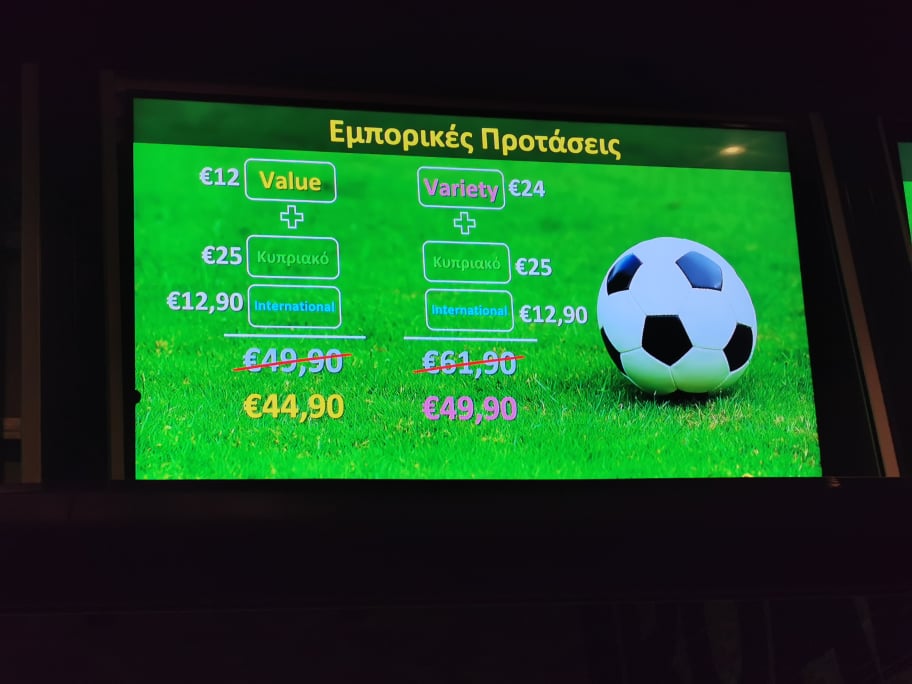 Όπως θα δείτε και στις πιο κάτω φωτογραφίες για ολόκληρο το κυπριακό ποδόσφαιρο το κόστος είναι επιπλέον 25 ευρώ (πρωτάθλημα, κύπελλο, Β' κατηγορία, Γυναικείο, Φούτσαλ). Για τα ευρωπαϊκά πρωταθλήματα το κόστος είναι επιπλέον 12,90 και τα φουλ πακέτα το value στα 44,90 ευρώ ενώ το Variety στα 49,90.