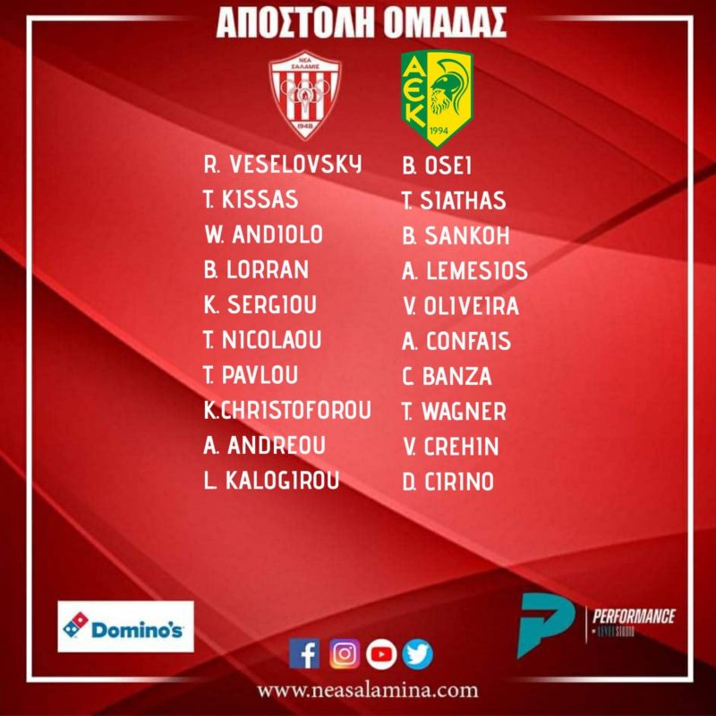 Δείτε πιο κάτω τους παίκτες που είναι στην διάθεση του Σάββα Δαμιανού για τον αγώνα: