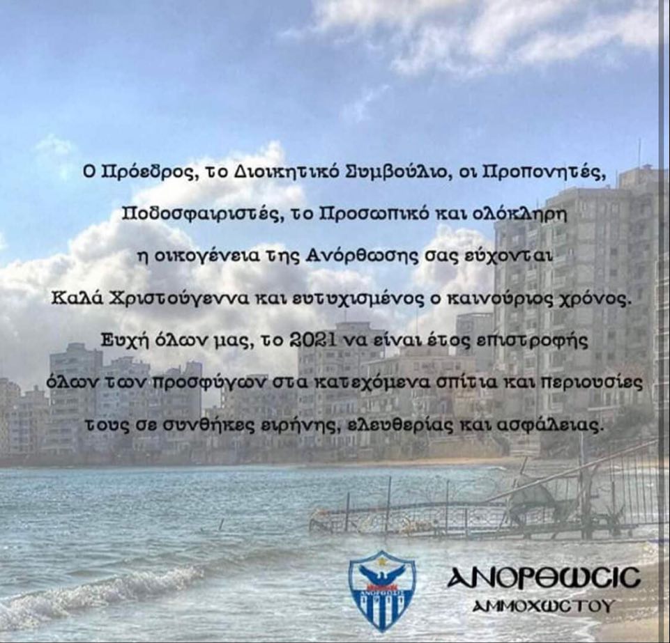 Ανορθωσιάτικο Χριστουγεννιάτικο μήνυμα (pic) Α' ΚΑΤΗΓΟΡΙΑ ΑΝΟΡΘΩΣΗ Άντρια Χήρα 25.12.202009:20 Χριστουγεννιάτικο μήνυμα από την Ανόρθωση μέσω προέδρου, ΔΣ, προπονητών, ποδοσφαιριστών και προσωπικό. 133221125_392309808703270_1456167433279448776_n.jpg