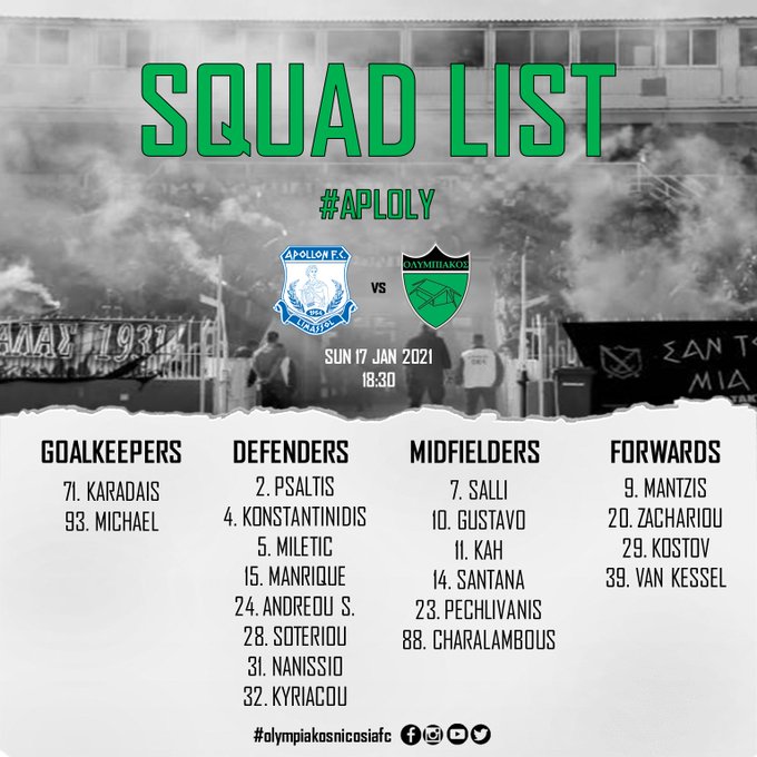 Η αποστολή ενόψει Απόλλωνα (pic) Α' ΚΑΤΗΓΟΡΙΑ ΟΛΥΜΠΙΑΚΟΣ ΛΕΥΚΩΣΙΑΣ 16.01.202117:50 Ο Ολυμπιακός ενημερώνει για την αποστολή του ενόψει του αγώνα με τον Απόλλωνα στο Τσίρειο. Αναλυτικά: er3qgilxaaiobhg.jpg