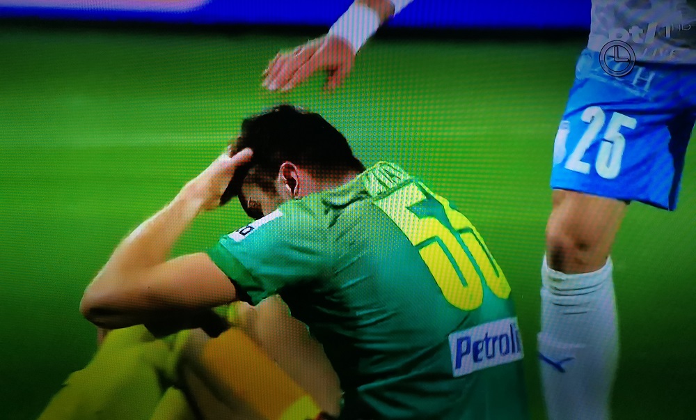 Ακριβώς σ' εκείνη τη δύσκολη στιγμή για τον άσο των Λαρνακέων ο τηλεοπτικός φακός «έπιασε» φευγαλέα τον Χάμπο Κυριάκου να πηγαίνει από πάνω του και να τον χαϊδεύει στοργικά στο κεφάλι, σε μια μεγαλειώδη κίνηση fair play και παρηγοριάς.