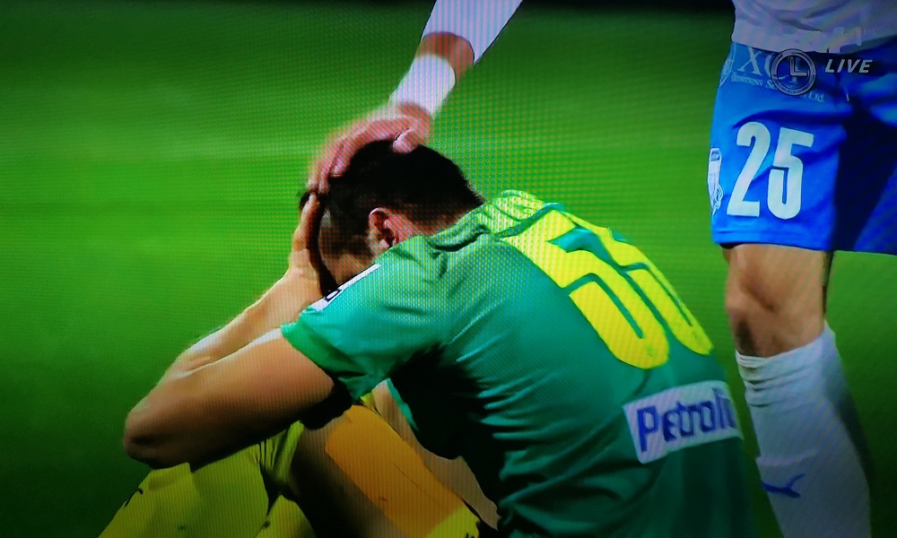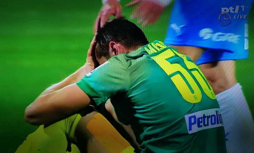 Ο Σκοπιανός αμυντικός ήταν απαρηγόρητος μετά το αβίαστο λάθος του στο 39ο λεπτό, το οποίο απέφερε το 0-1, και πεσμένος στο γρασίδι κοιτούσε αποσβολωμένος τους φιλοξενούμενους να πανηγυρίζουν το τέρμα του Ντιγκινί.