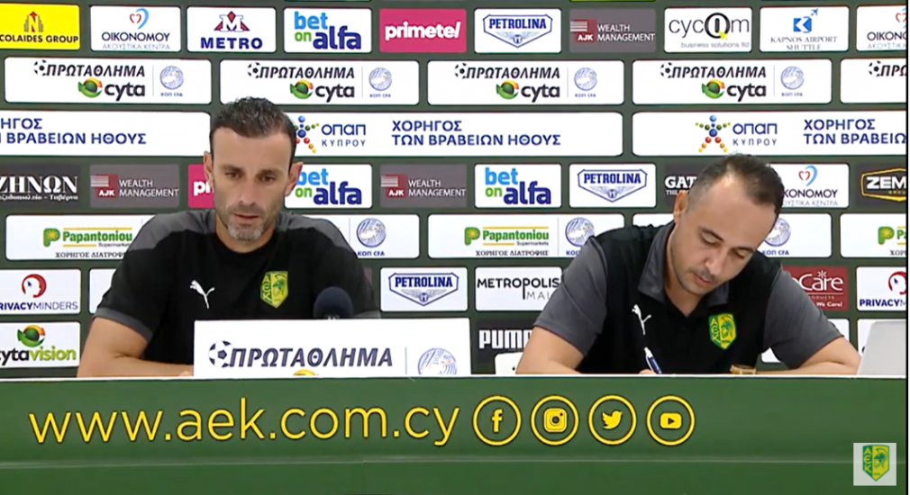Πρώτο σχόλιο για Απόλλωνα: «Αρκετά ενδιαφέρον παιχνίδι, μεγάλη πρόκληση για μας. Κάναμε αρκετή δουλειά γι’ αυτό το ματς, ανυπομονούμε να παρουσιαστούμε και πάλι ανταγωνιστικοί, πρέπει να έχουμε ένταση. Οι ποδοσφαιριστές μου είναι έτοιμοι για το αυριανό παιχνίδι».