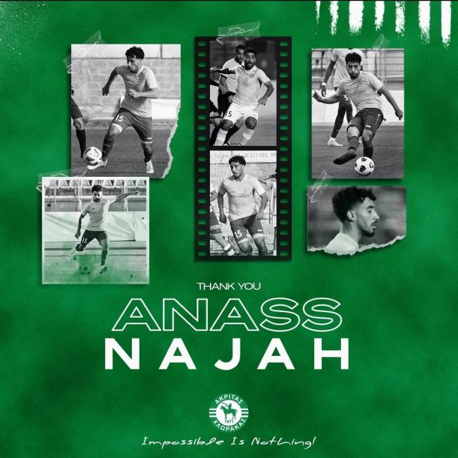 «Ο Ακρίτας Χλώρακας ευχαριστεί τον ANASS NAJAH για την πολύτιμη προσφορά του προς την ομάδα μας και του ευχόμαστε κάθε επιτυχία στη συνέχεια της καριέρας του!»