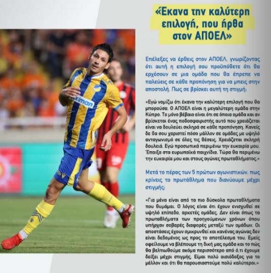 Η συνέντευξη που παραχώρησε ο επιθετικός του ΑΠΟΕΛ Μάριος Ηλία στο επίσημο πρόγραμμα αγώνα με την Καρμιώτισσα.