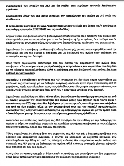 Η ΚΟΠ ανακοίνωσε τις ποινές του Αθλητικού Δικαστή και ανάμεσα σε άλλα έγινε γνωστό πως Απόλλων και ΑΕΛ θα παίξουν το μεταξύ τους ντέρμπι του πρώτου γύρου κεκλεισμένων των θυρών.