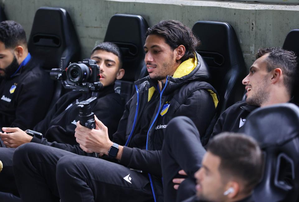 Φωτογραφία από τον πάγκο του ΑΠΟΕΛ. Ο Μάριος Ηλία επεξεργάζεται την φωτογραφική μηχανή σε… ρόλο φωτογράφου λοιπόν ο άσος των γαλαζοκιτρίνων.