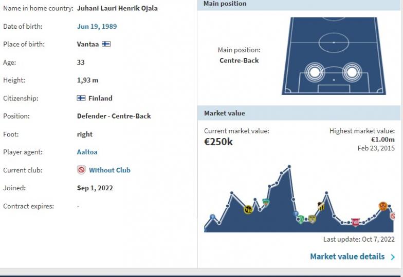 Ο Juhani γεννήθηκε στις 19/06/1989 (33 ετών), αγωνίζεται ως αμυντικός και έχει να επιδείξει μια αξιοπρόσεκτη καριέρα . Ξεκίνησε τα πρώτα του ποδοσφαιρικά βήματα από τις ακαδημίες της HJK Helsinki, ενώ στη συνέχεια αγωνίστηκε σε BSC Young Boys, Terek Grozny, SJK Seinäjoki, Häcken, Vejle BK και Motherwell FC.