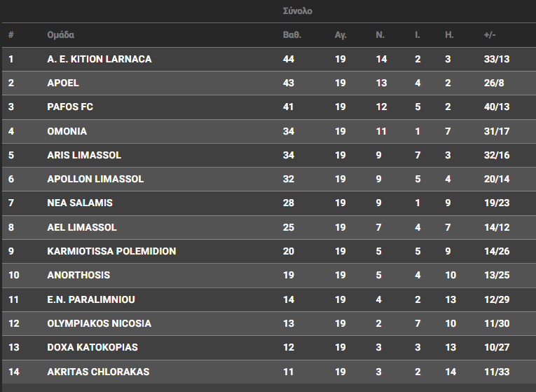 Η διαμόρφωση της βαθμολογίας μετά από 19 αγωνιστικές: