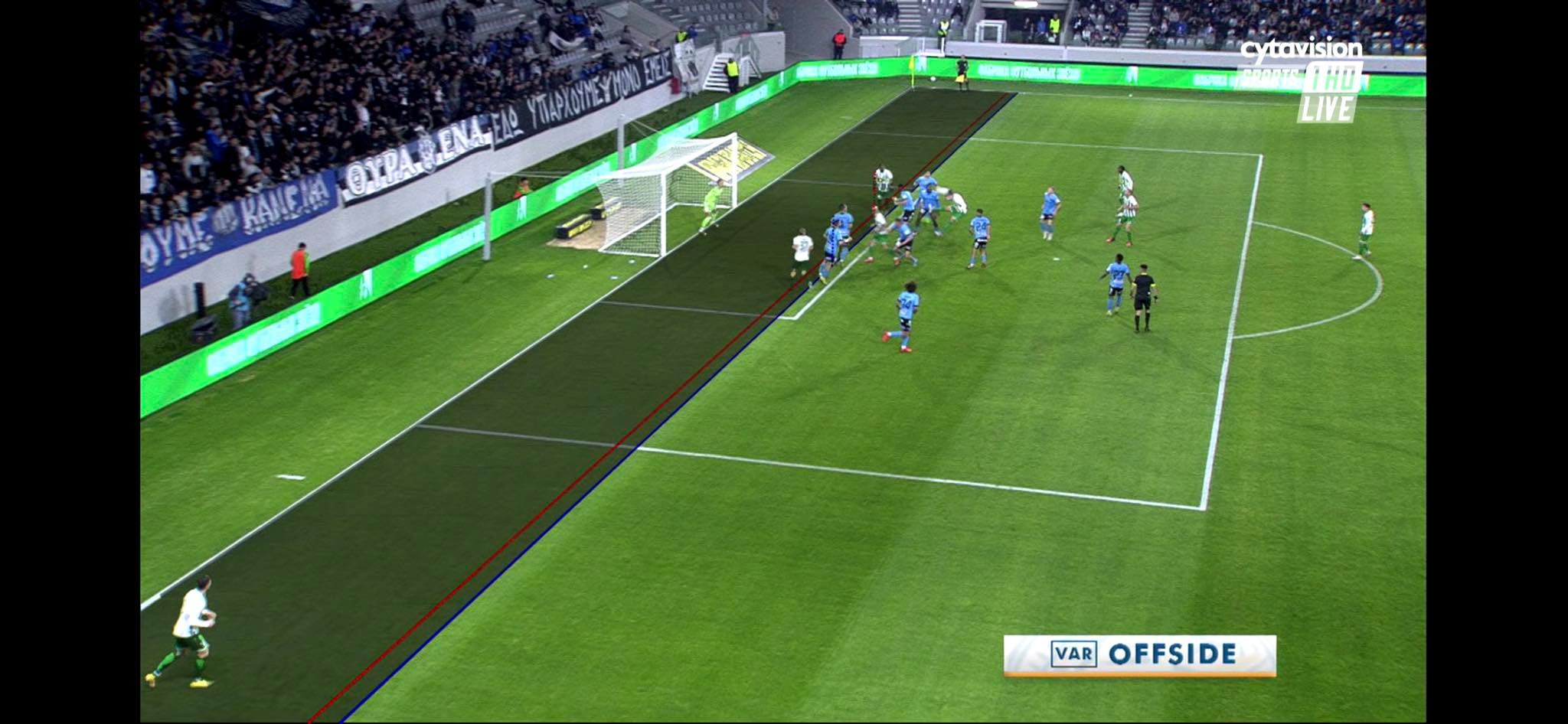 Ωστόσο το VAR ακύρωσε το γκολ για οφ-σαιντ αφού ο ποδοσφαιριστής του Άρη όταν πήρε την μπάλα ήταν ελάχιστα πιο μπροστά.