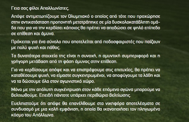 - Δείτε ΕΔΩ όλα τα νέα του Απόλλωνα