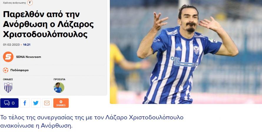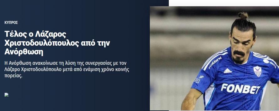 Ο Λάζαρος Χριστοδουλόπουλος αποτελεί παρελθόν και επίσημα από την Ανόρθωση.