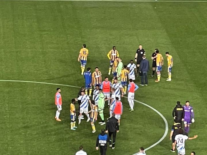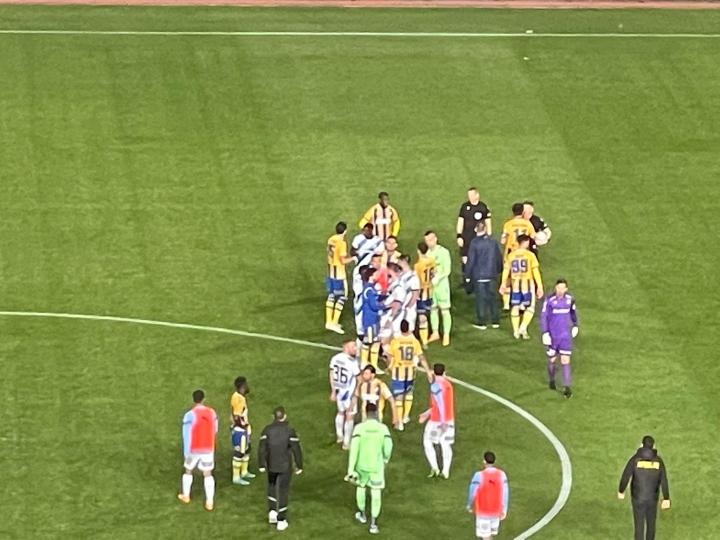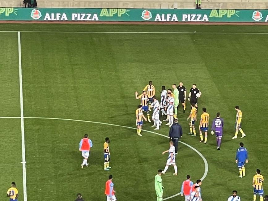 Ο Απόλλωνας κέρδισε 0-2 τον Απόλλωνα στο ΓΣΠ, σε μία σπουδαία αναμέτρηση με τους κυανόλευκους ν' ανεβαίνουν στην 4η θέση της βαθμολογίας. Μετά το τέλος του αγώνα υπήρχε μικρής διάρκειας ένταση μεταξύ Ρομπέρζ και Κρέσπο όπως θα δείτε κα ιστις πιο κάτω φωτογραφίρες μας.
