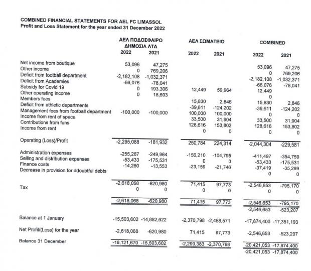 Τόση ήταν η ζημιά της ΑΕΛ για το 2022 Α' ΚΑΤΗΓΟΡΙΑ ΑΕΛ 09.05.202313:15 Η ΚΟΠ ανακοίνωσε τις οικονομικές καταστάσεις των ομάδων, με την ΑΕΛ να έχει ζημιά 2.6 εκατομμυρίων μέσα στο 2022. Η οικονομική κατάσταση του Απόλλωνα - Ζημιά 1,8 εκατομμύρια Αναλυτικά: CLOSE