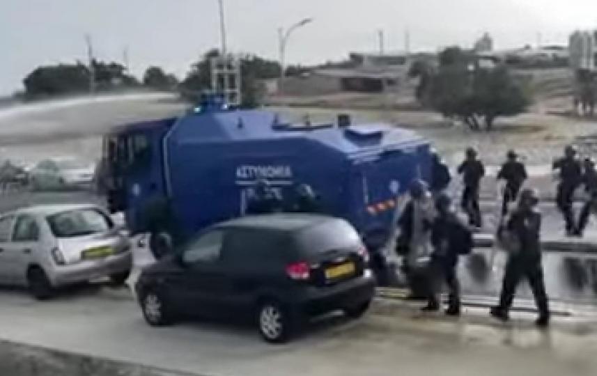 Ισχυρή αστυνομική δύναμη έξω από το «Άλφα Μέγα» για το Απόλλων - ΑΠΟΕΛ. Πριν την έναρξη του αγώνα προκλήθηκε μικρή ένταση εκτός του γηπέδου, με την άφιξη των οπαδών του ΑΠΟΕΛ με τον «Αίαντα» να αναλαμβάνει δράση.