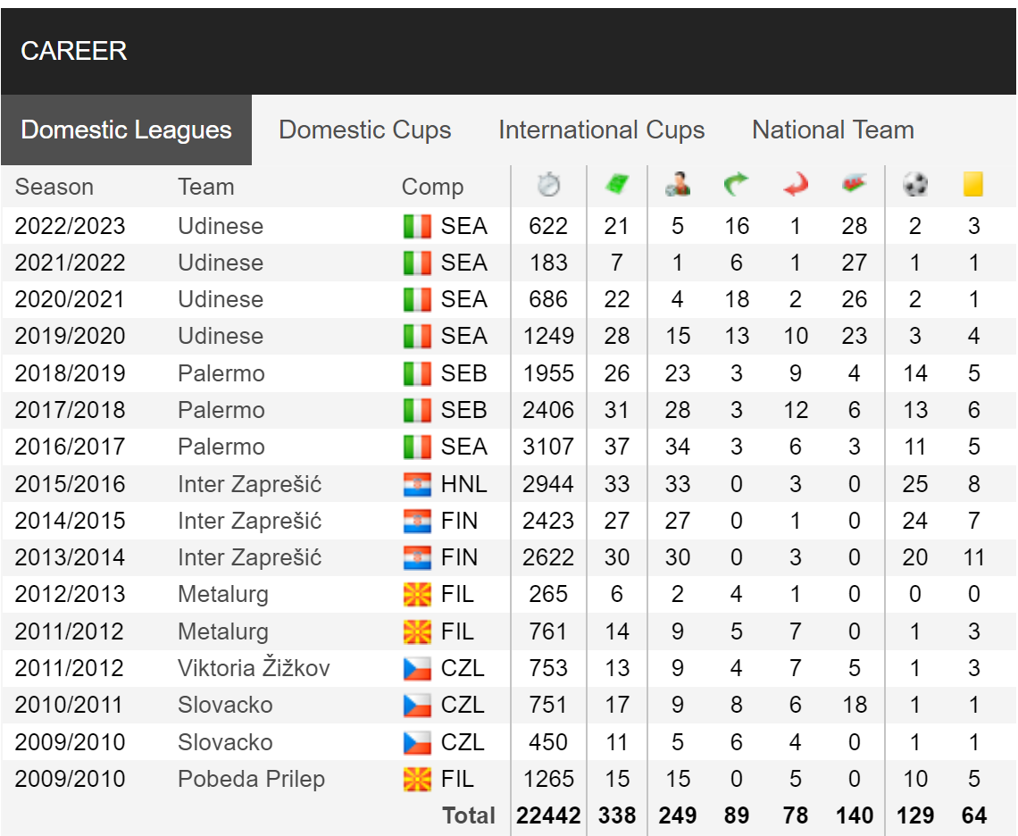 Τα στατιστικά του: