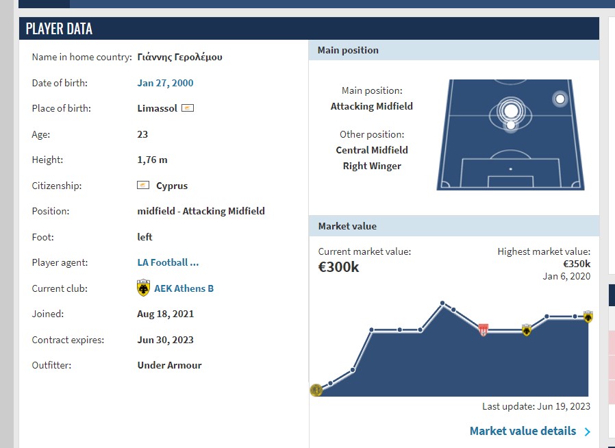 Ο Γιάννης Γερολέμου την λήξασα σεζόν έπαιξε στην ΑΕΚ Β' έχοντας καταγράψει 17 συμμετοχές, πετυχαίνοντας 2 γκολ και μοιράζοντας μια ασίστ.