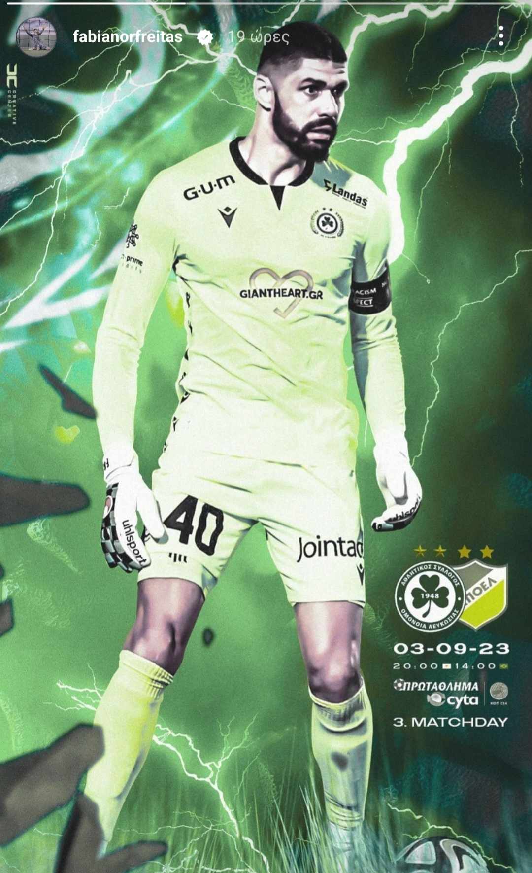 Ανάρτηση στα social media από τον τερματοφύλακα της Ομόνοιας Φαμπιάνο, λίγες ώρες πριν το μεγάλο ντέμρπι με τον ΑΠΟΕΛ.