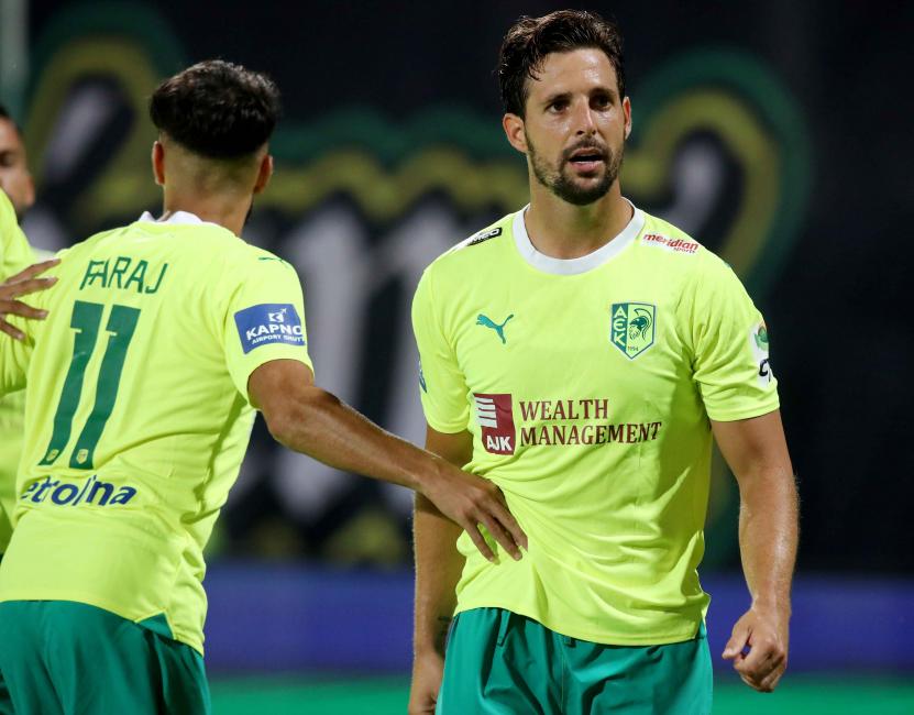 Προβάδισμα δύο τερμάτων για την ΑΕΚ στο ημίχρονο, με τον Φραν Σολ να βρίσκει ξανά δίχτυα για το 3-1. Μετά από εκτέλεση κόρνερ ο Φραν Σολ που ήταν αμαρκάριστος έστειλε τη μπάλα στα δίχτυα.