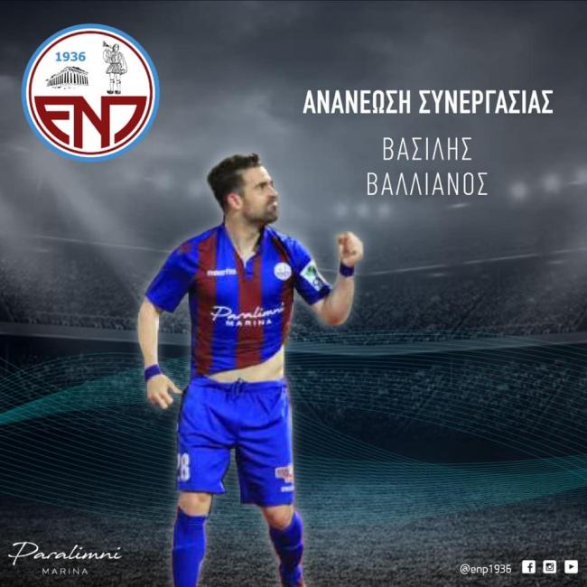 Η εταιρεία Ε.Ν.Π ΠΟΔΟΣΦΑΙΡΟ ΔΗΜΟΣΙΑ ΛΤΔ ανακοινώνει την ανανέωση της συνεργασίας μας με τον ακραίο αμυντικό Βασίλη Βαλλιάνο.