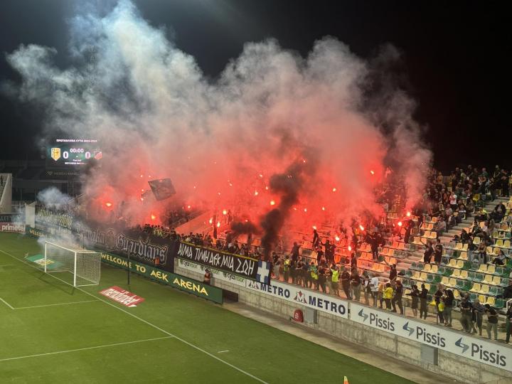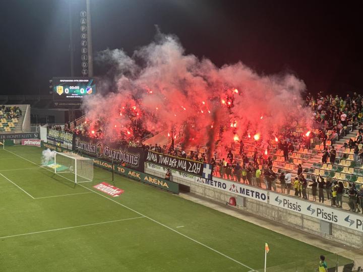 Δείτε παρακάτω πως υποδέχθηκαν οι φίλοι της ΑΕΚ και του ΑΠΟΕΛ τις δύο ομάδες στον αγωνιστικό χώρο πριν την έναρξη του ντέρμπι.