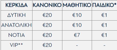 ** Εισιτήρια στα VIP εκδίδονται μόνο για μέλη του ΓΣΠ.