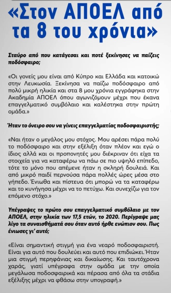 Στο επίσημο πρόγραμμα του αγώνα για το ματς με την Δόξα, μίλησε ο άσος του ΑΠΟΕΛ Σταύρος Γαβριήλ.