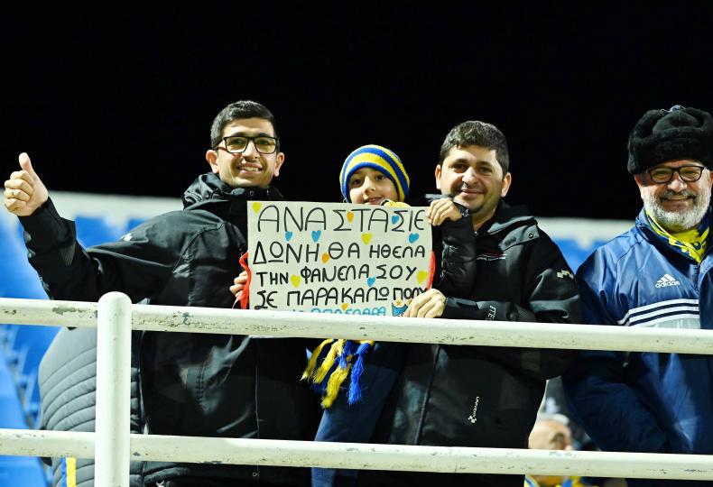 Ο μικρός φίλος του ΑΠΟΕΛ βρέθηκε στο Δασάκι για να παρακολουθήσει από κοντά την αναμέτρηση της ομάδας του με τον Εθνικό, ενώ όπως μπορείτε να δείτε και από το πιο κάτω στιγμιότυπο, εξέφρασε την επιθυμία του για τη φανέλα του Τάσου Δώνη.