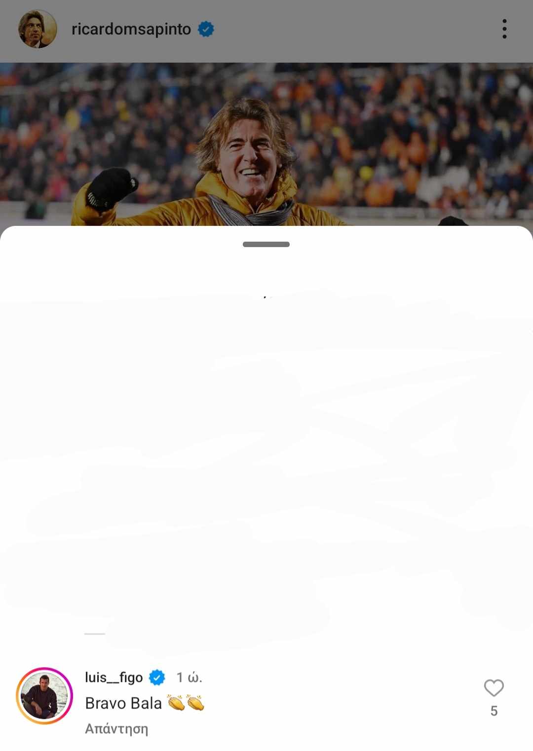 Την εν λόγω ανάρτηση σχολίασε, μεταξύ άλλων, ο συμπατριώτης και πρώην συμπαίκτης του Πορτογάλου τεχνικού, Λουίς Φίγκο!