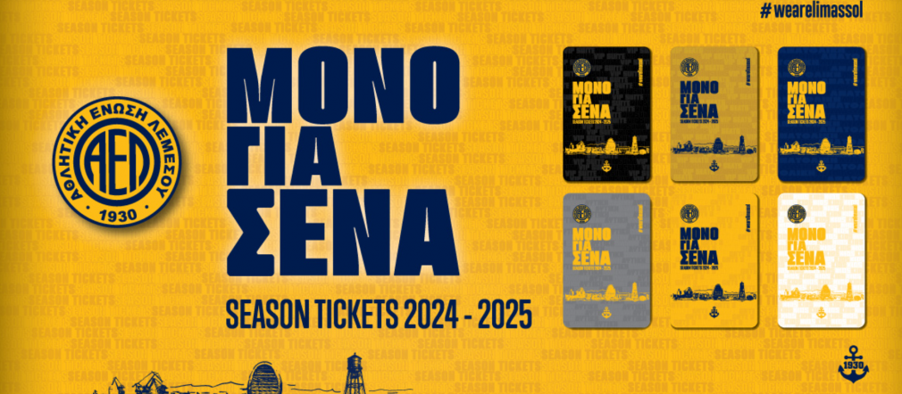 Η διάθεση των εισιτηρίων διαρκείας συνεχίζεται κανονικά ηλεκτρονικά στο https://tickets.ael-fc.com/ και από το AEL Official Shop (Αγίας Ζωνης).