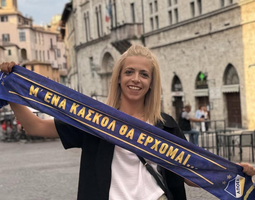 Η φίλαθλος του ΑΠΟΕΛ δεν θα βρίσκεται στο ΓΣΠ την Πέμπτη το βράδυ για τη ρεβάνς με την Ρίγας Σκόλα, αλλά όπου πάει το κασκόλ είναι μαζί της και ιδού η απόδειξη! Φωτογραφία από την επίσκεψή της στην Ιταλία.