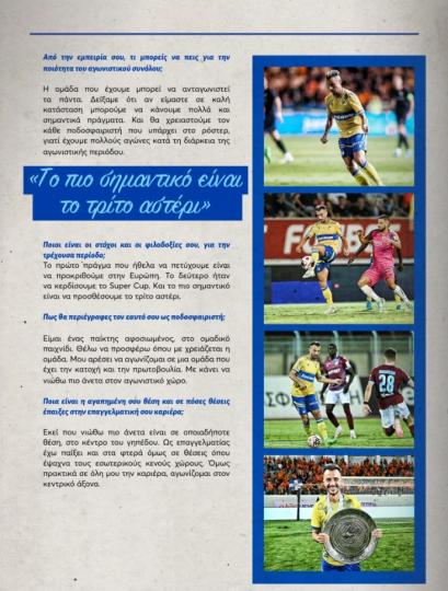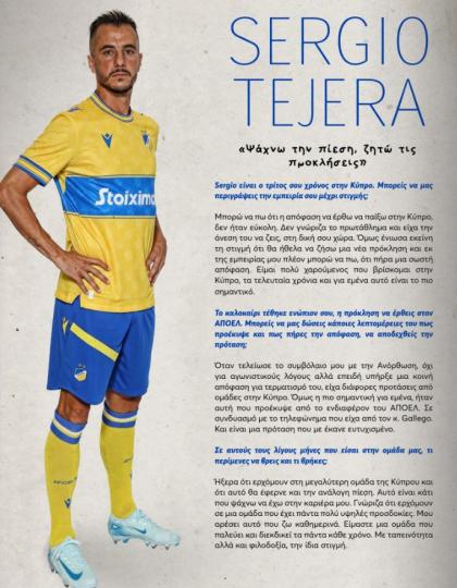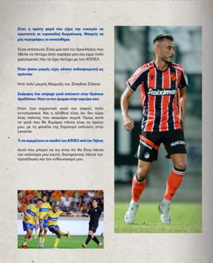 Ο άσος του ΑΠΟΕΛ, Σέρχιο Τεχέρα, μίλησε στο επίσημο περιοδικό της ομάδας ενόψει του εντός έδρας αγώνα με την Ανόρθωση.