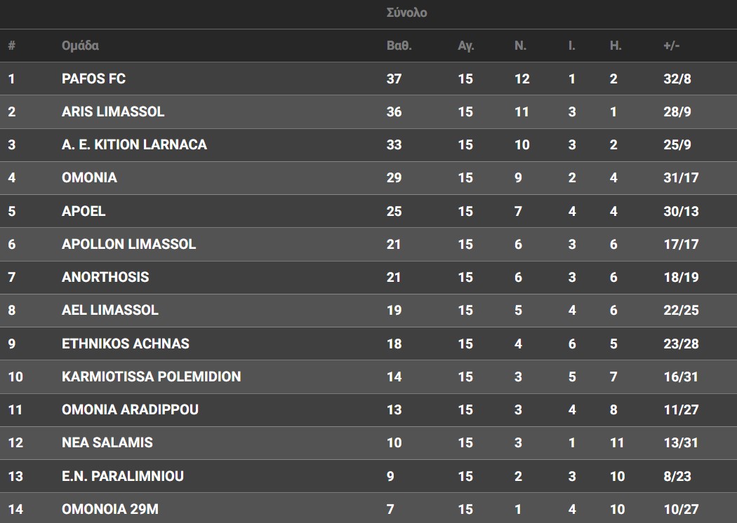 Ο ΑΠΟΕΛ παραμένει στην 5η θέση με 25 βαθμούς, έχοντας χάσει άλλη μια ευκαιρία να πλησιάσει τις ομάδες που προπορεύονται, ενώ ο Εθνικός έκανε άλλο ένα σημαντικό βήμα που διευκολύνει σημαντικά την υπόθεση της παραμονής, που είναι ο αρχικός στόχος της ομάδας της Άχνας.