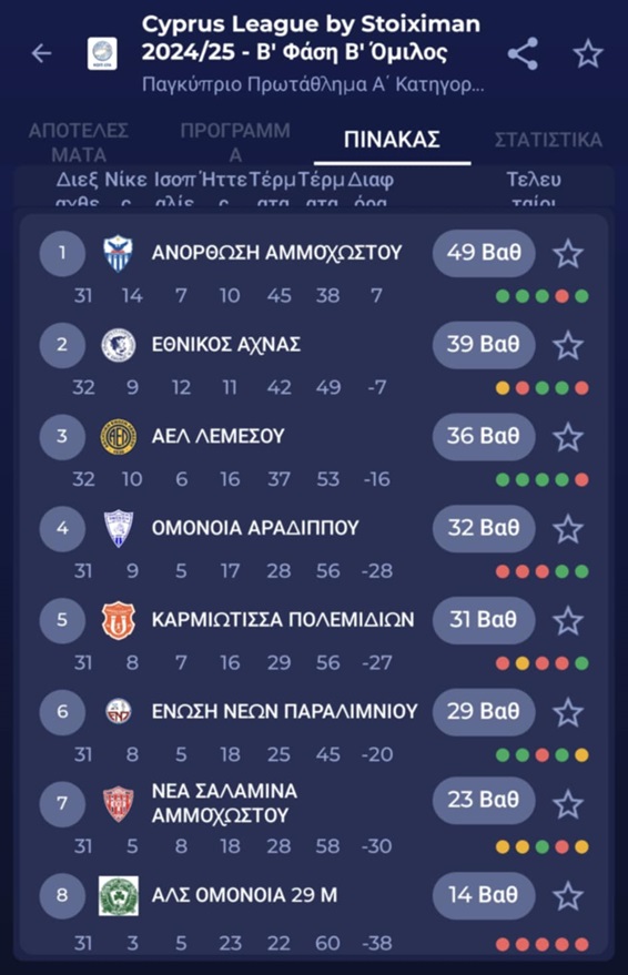 19:00 ΑΕΛ – Καρμιώτισσα Πολεμιδιών