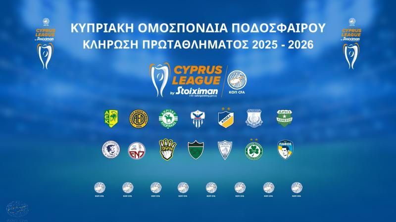 Στη Cyprus League by Stoiximan 2025-2026 θα συμμετάσχουν οι ακόλουθες 14 ομάδες (με αλφαβητική σειρά):