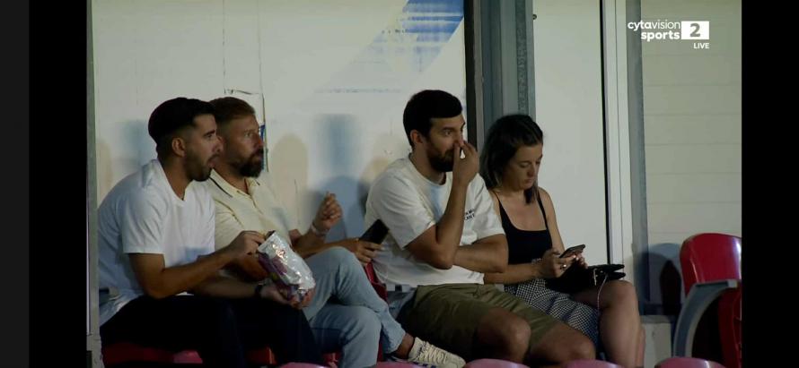 Στο στάδιο «Αμμόχωστος», για να παρακολουθήσουν από κοντά τον αγώνα της Freedom24 Krasava ΕΝΥ με την Ομόνοια Αραδίππου, βρέθηκαν τόσο ο πρώην τεχνικός της Ανόρθωσης, Χοακίν Γκόμεθ, όσο και ο νυν, Τιμούρ Κετσπάγια.