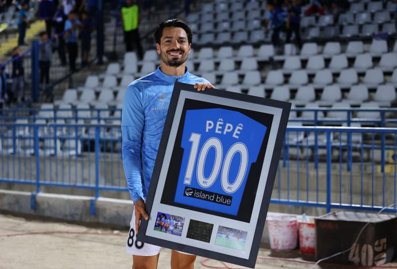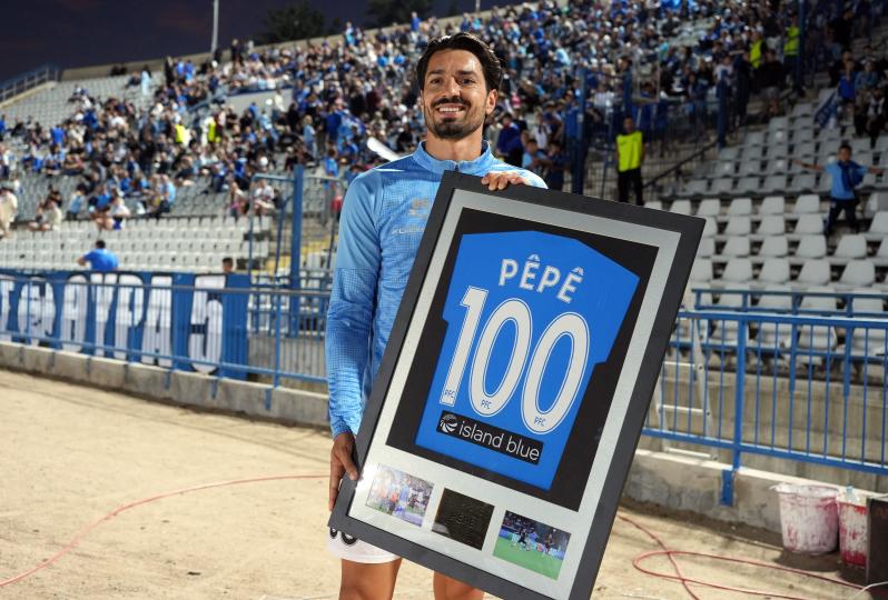 Ο Πορτογάλος μέσος συμπληρώνει σήμερα 100 παιχνίδια με τη φανέλα της Πάφου σε όλες τις διοργανώσεις, με 7 γκολ και 12 ασιστ. Η διοίκηση της Πάφου δεν θα μπορούσε να μην βραβεύσει έναν από τους πιο πολύτιμους ποδοσφαιριστές της, με τον Πέπε να παραλαμβάνει την τιμητική φανέλα των... 100 αγώνων.